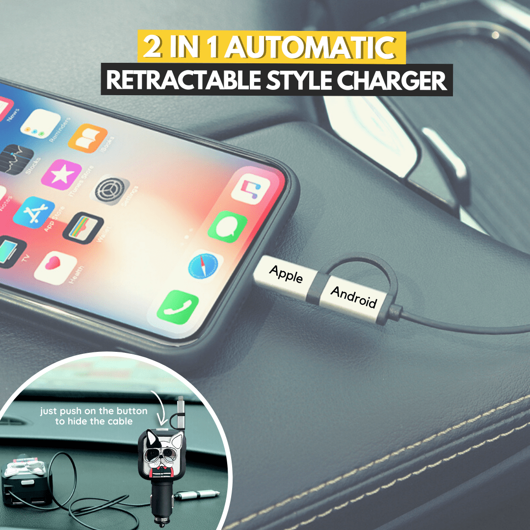 This charger will win your heart! One Push Button - 3 in 1 Car Retractable Charger has a unique design and multiple useful features. There will be no need anymore to take with you your Type-C, Android, and iPhone cable because this charger has it all!
