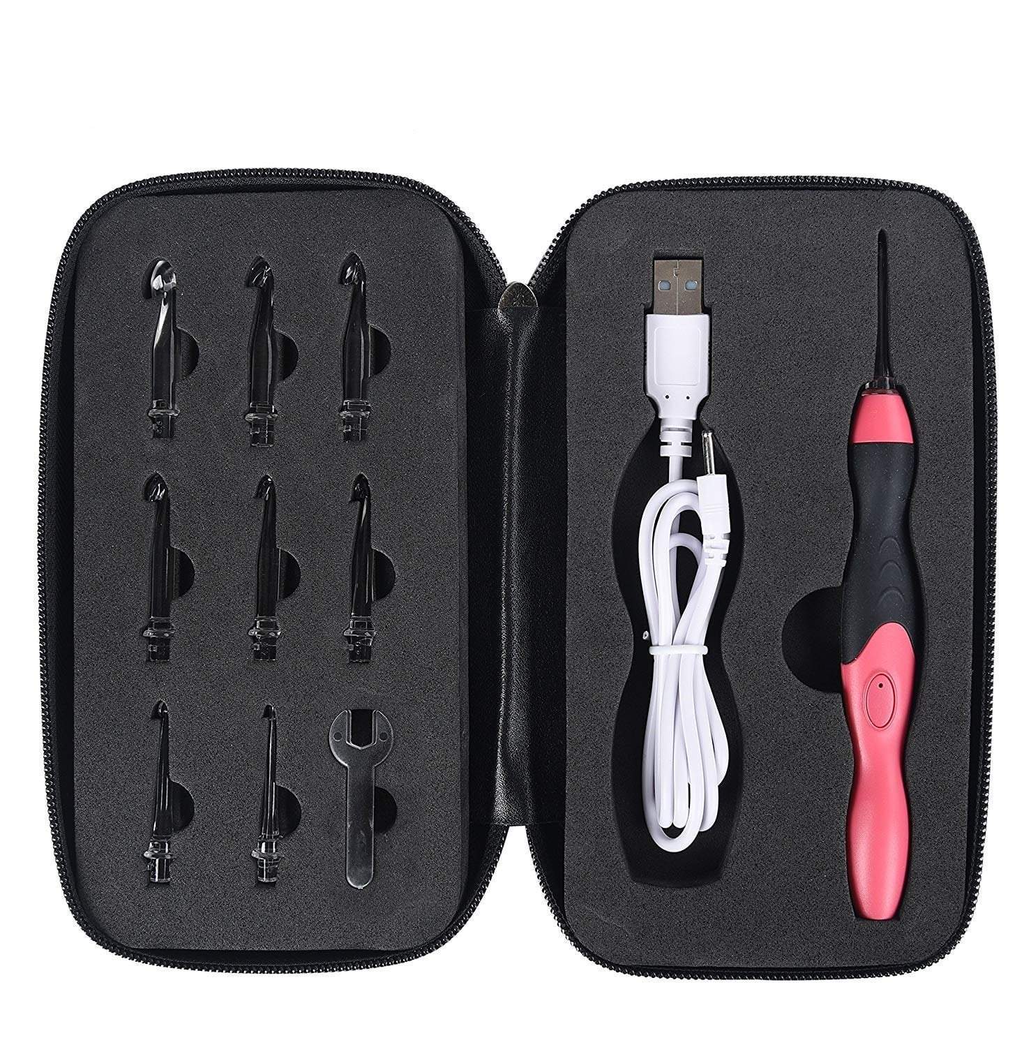 Let your crocheter's dream come true! Featuring 9 crochet hooks that are interchangeable and marked individually for your convenience. The Lighted Crochet Hook is a LED-powered tool that comes with a free zip case for easy storage. Now you can take crocheting with you wherever you go!