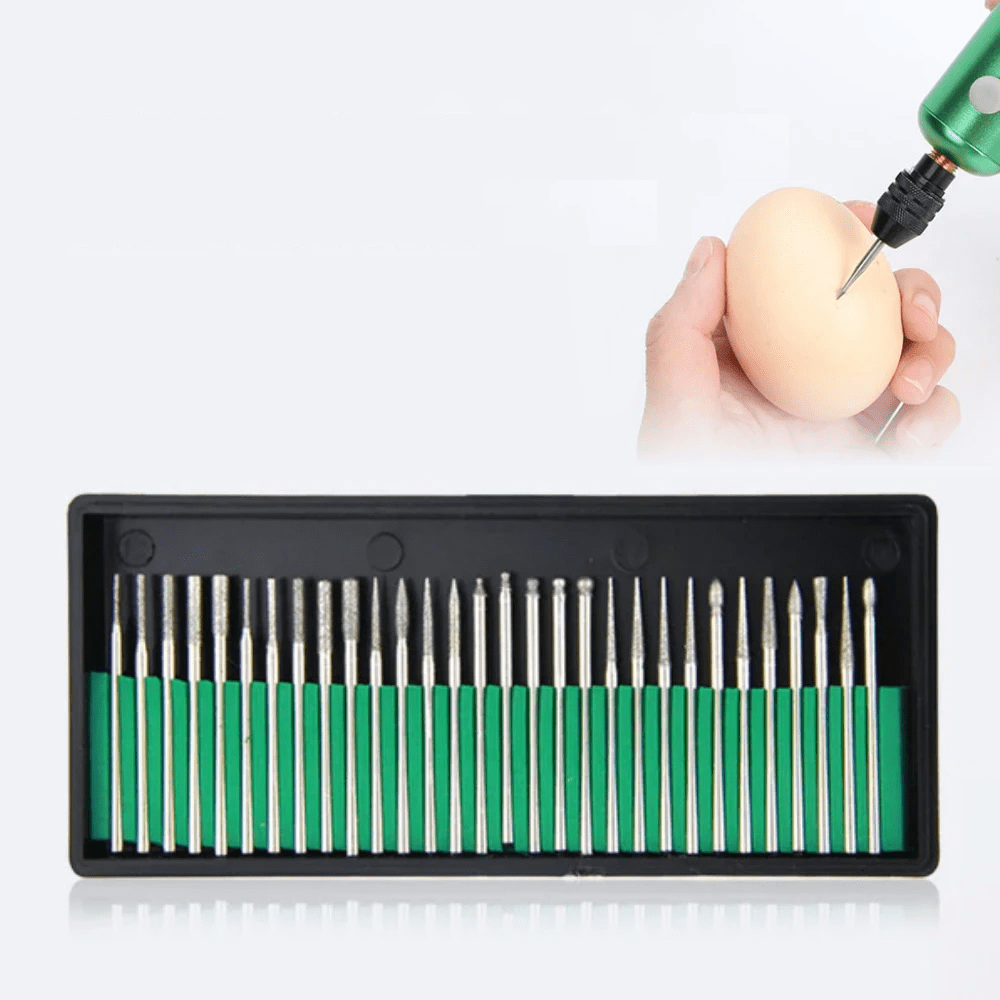 Here is a perfect tool kit for small jewelry making! Premium Engraving Drill Bits Set is designed for fine detail work, cutting, engraving, carving, touch-up, and finishing work on glass, metal, stone, ceramic, wood, and plastic. It comes with 36 different bits for different usage!