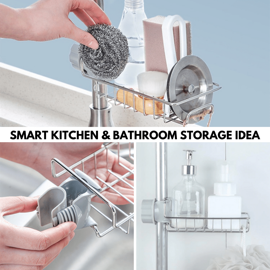 Are you still worried that there is no place to put things in the kitchen? Our Premium Faucet Rack is a must-have for the kitchen to make your life easier! It is perfect for holding sponges, scouring pads, nylon scrubbers, brushes, soaps, liquid soap dispenser, and other kitchens, bathroom, and sink supplies right where you need them. Can be hung on not only in the kitchen sink but also in many other places.