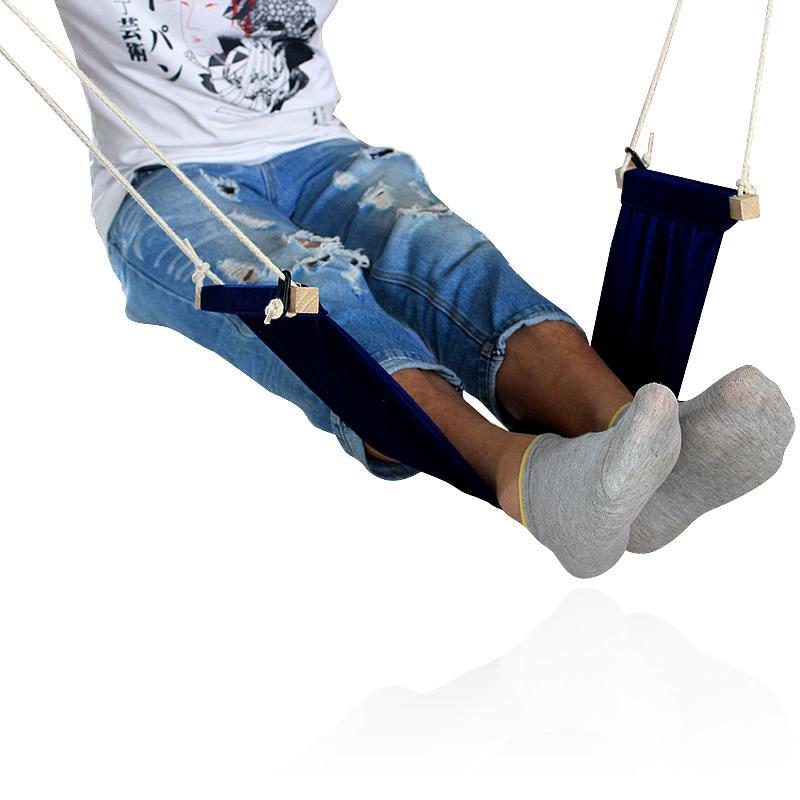 This unique hammock design replaces that extra chair you use to prop your feet up. The Foot Relaxing Desk Hammock is a desk hammock designed specifically for resting your feet. It hooks onto either side of any desk with two metallic clips.