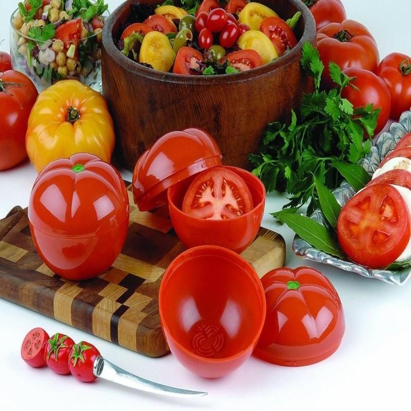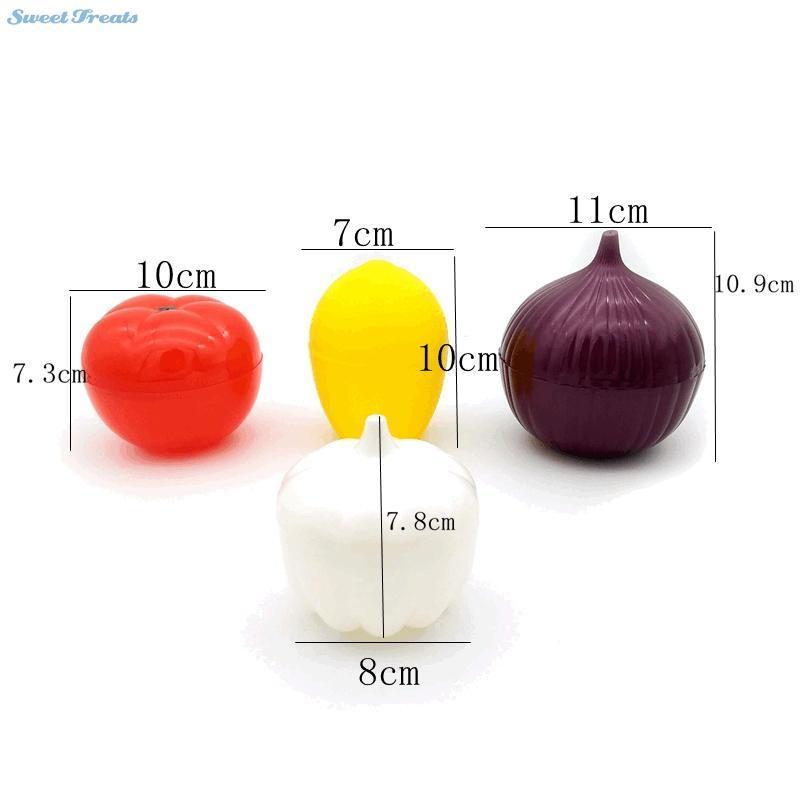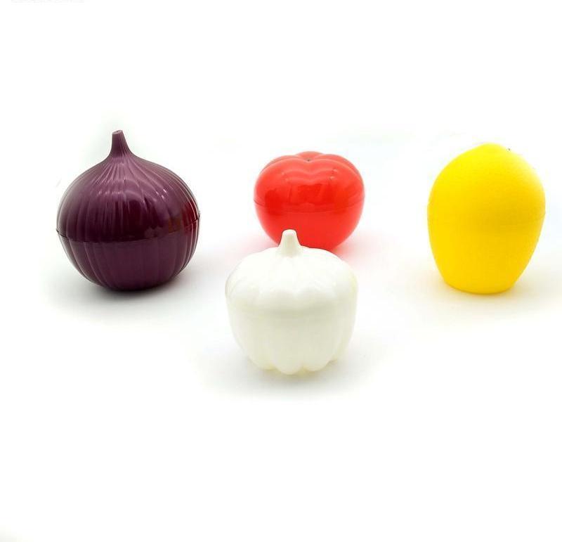 Fun Saver Container is a dishwasher-safe, BPA-free storage specially designed for that purpose. Its two sides are attached by an airtight twist lock, prolonging the life of your cut lemon, tomato, garlic, or onion. Made of bright and colorful plastic that looks like the actual produce, Fun Saver Container will never be lost & forgotten in the fridge.