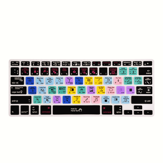 This ultra-thin form-fitting Keyboard Master - Adobe Design Cover does not affect typing ability or speed, and includes custom editing buttons and color-coded shortcuts right on the keys!