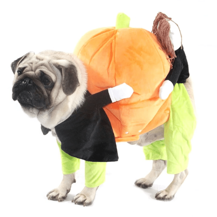 Get your pooch ready for Halloween! This hilarious eye-catching dog costume will make your dog a stand out this Halloween. Watch your doggy pal strut around getting busy for Halloween delivering pumpkins. The pet dog carrying pumpkin cosplay costume is suitable for various small, medium, and large dogs.