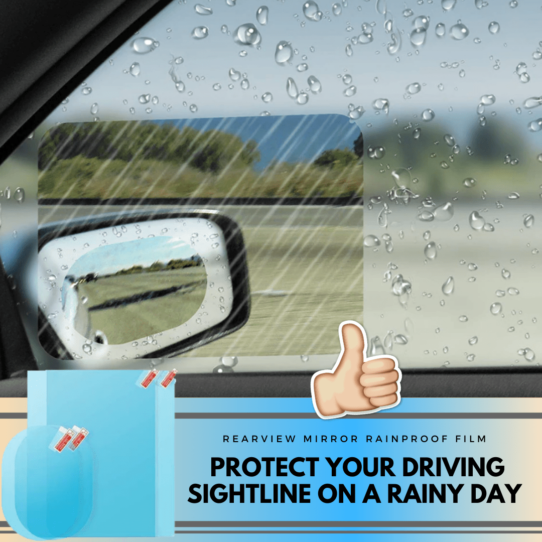 Safe Drive - Rearview Mirror Rainproof Film will improve your safety while driving on rainy or foggy weather solving the trouble of not being able to clearly see. It fits all standard sizes of rearview mirrors making them perfectly clear and waterproof.